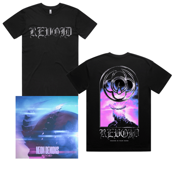 Gothic Revoid Logo on front chest and graphic Neon Demons lyrics on back print